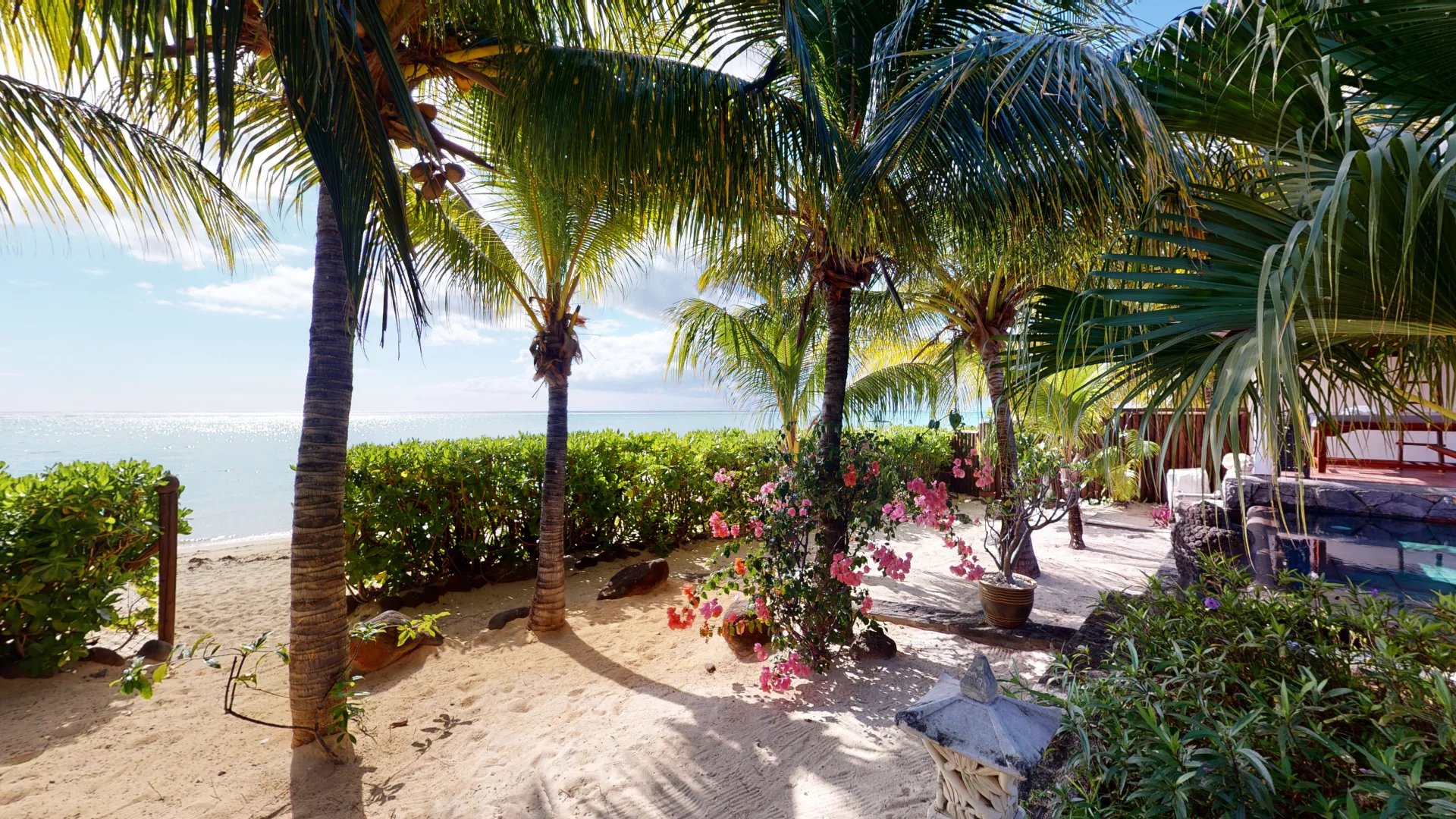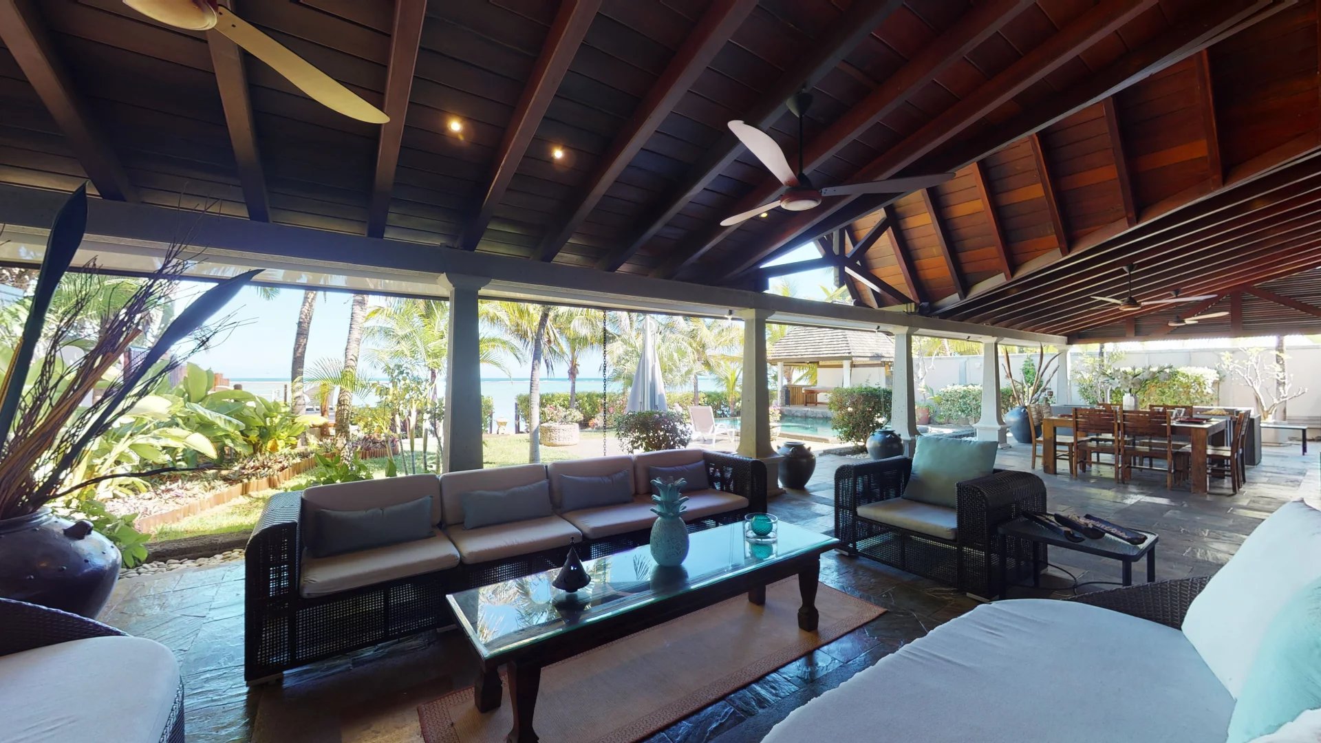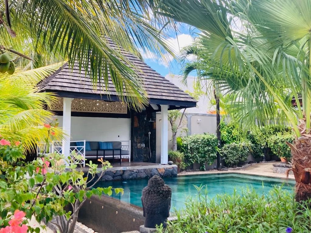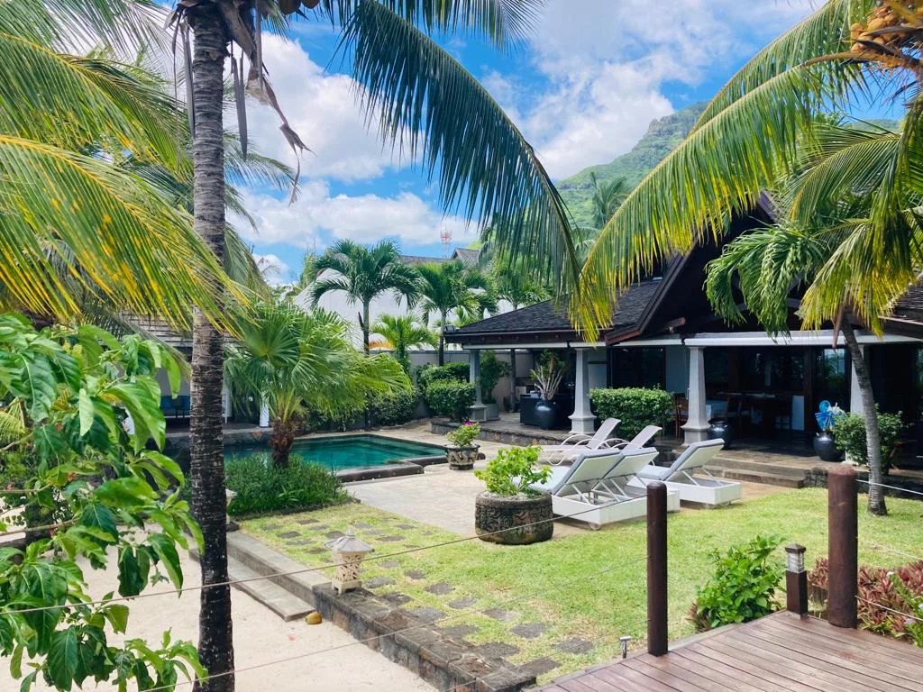 Cette somptueuse villa de 3 chambres avec salle de bains avec son appartement indépendant en bord de mer est la quintessence du luxe pour vos prochaines vacances à l'île Maurice.