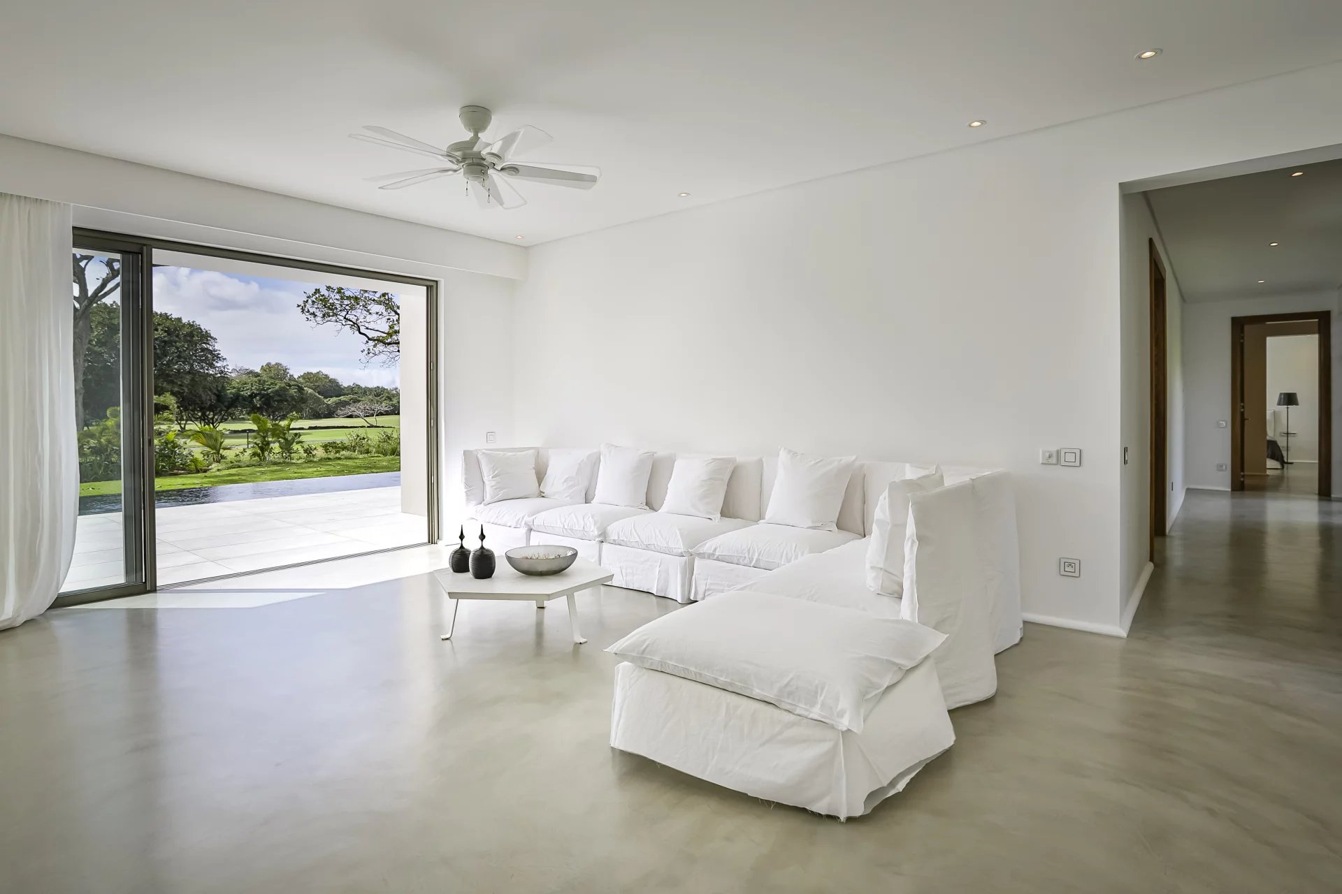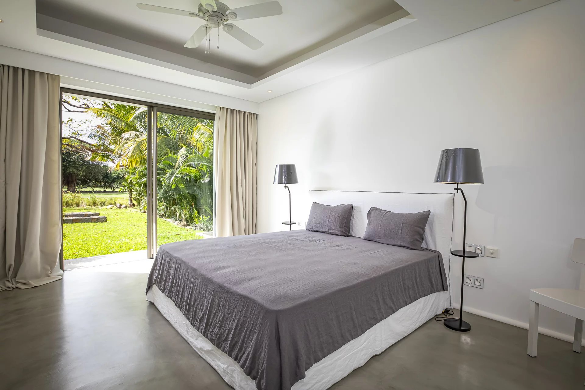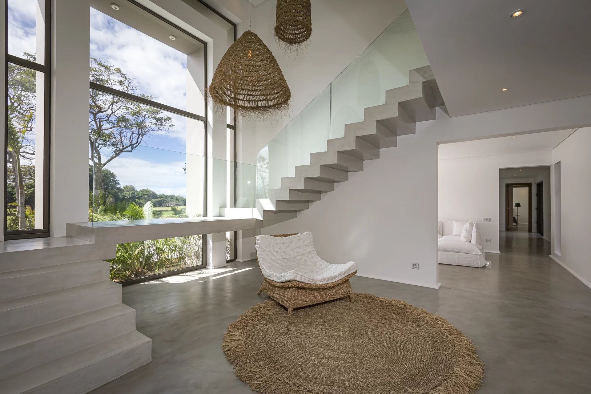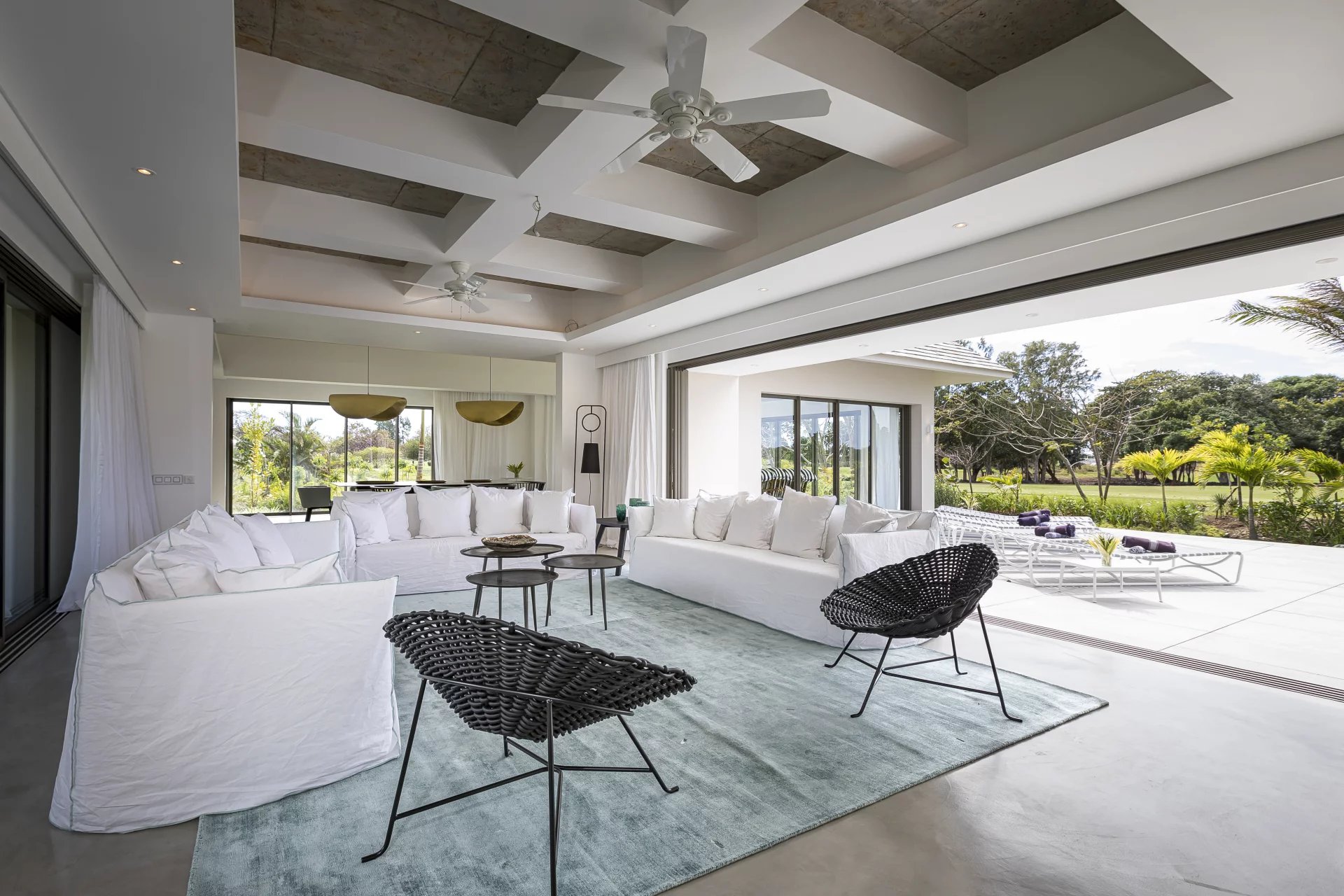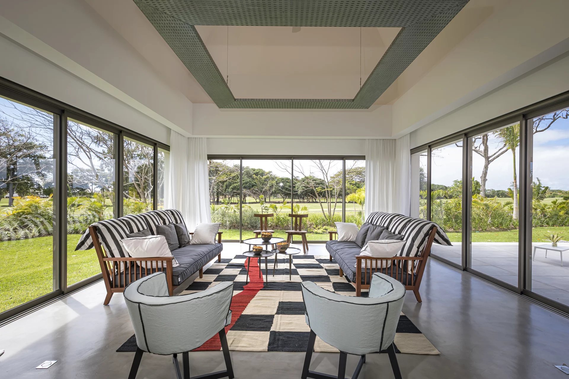 Ce bien contemporain offre un grand espace salon et de réception avec cuisine américaine en bois kiaat extrêmement lumineux et ouvert sur la piscine de 70 m2 offrant une vue dégagée sur le trou No2 du parcours de golf. La décoration intérieure épurée aux tons neutres, aménagée de meubles de la marque Gervasoni, vous permettra de personnaliser les espaces de vie selon vos goûts. Une villa idéale pour profiter du cadre de vie tropical et des services 5*.