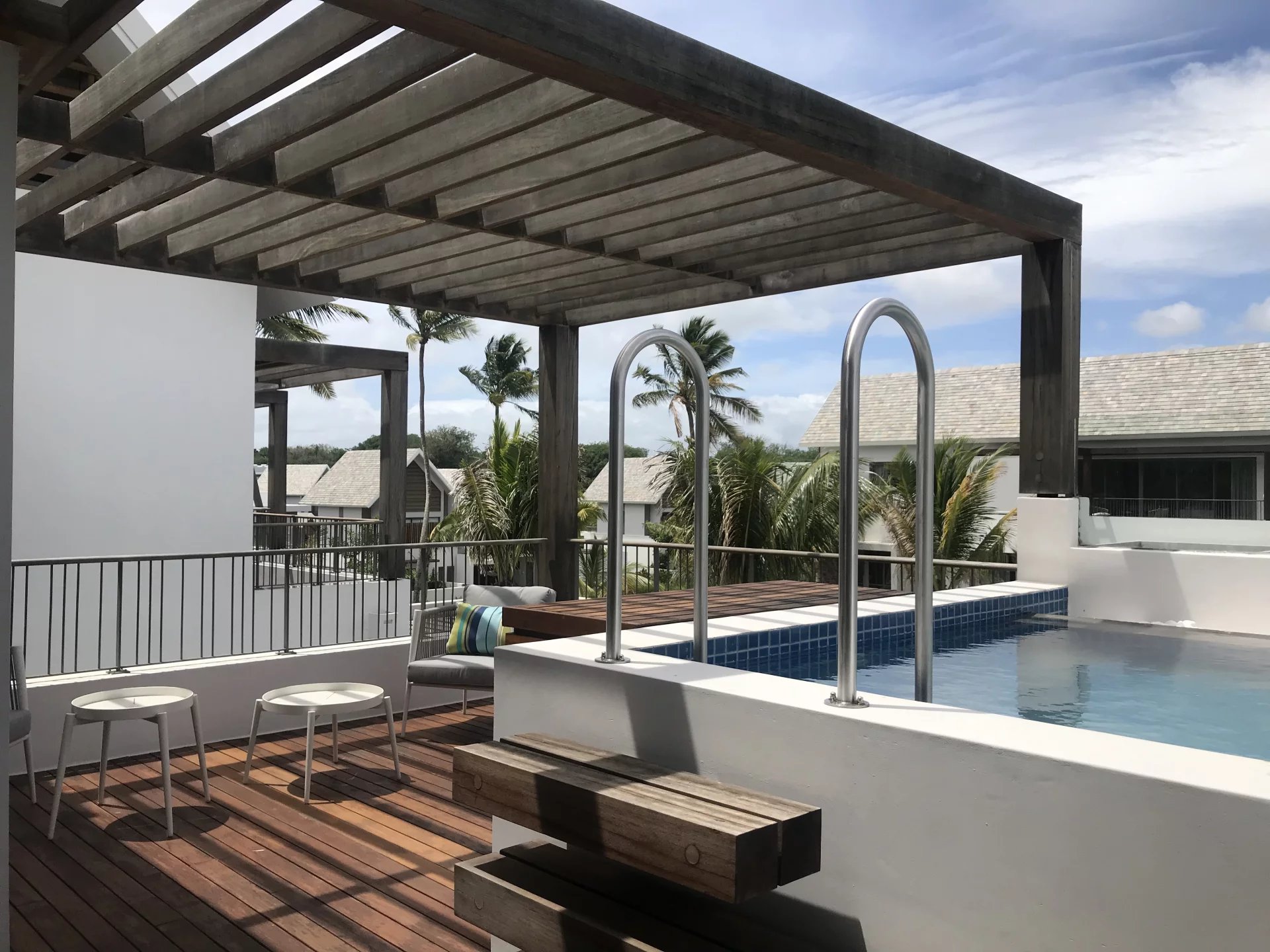 L'architecture contemporaine a été imaginée par les architectes et urbanistes de renommée mondiale WATG. Elle incarne l'esprit, le design épuré et la chaleur des matériaux caractéristiques de l'art de vivre mauricien. De grandes terrasses privées et des ouvertures permettent le dialogue entre espaces intérieurs et extérieurs. La terrasse de la piscine elle-même est un prolongement harmonieux du salon. Chaque résidence dégage une sensation particulière de confort tropical, avec une vue imprenable sur la mer ou le golf, qui s'étend jusqu'aux montagnes.