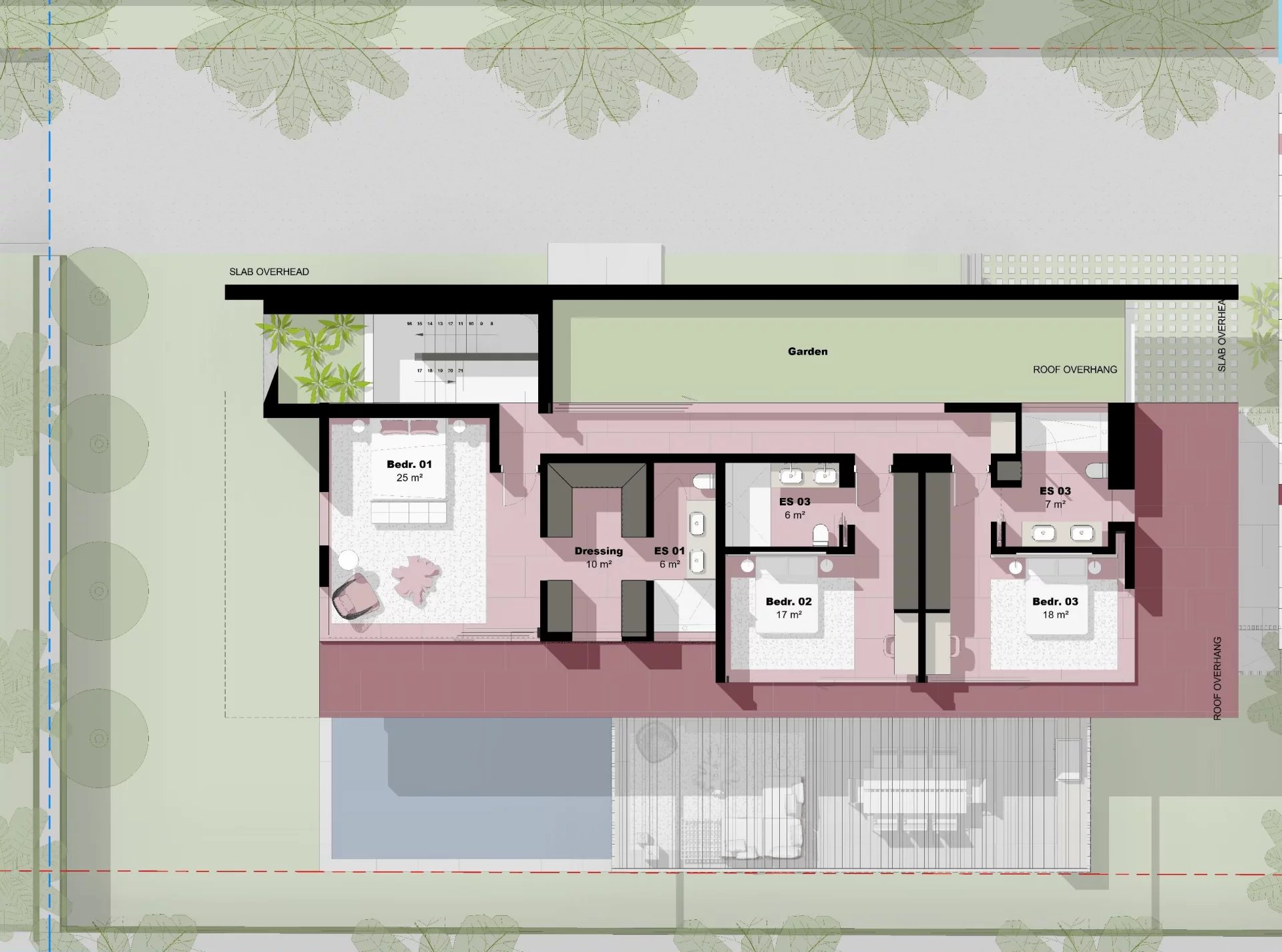 Nichées à l’abri des regards, le long d’une allée arborée, découvrez 5 villas privées et exclusives dotées de 3 ou 4 chambres spacieuses aux finitions soignées. Ces villas, conçues pour séduire et impressionner, offrent un cadre de vie exceptionnel, tant par leur conception que par leur design épuré et sophistiqué. Les volumes sont idéalement distribués afin d’accentuer le sentiment de liberté. Le béton ciré, le bois de chêne et la végétation luxuriante règnent en maître et donnent un cachet unique aux villas. Chaque demeure dispose d’un double garage et d’un accès direct à votre