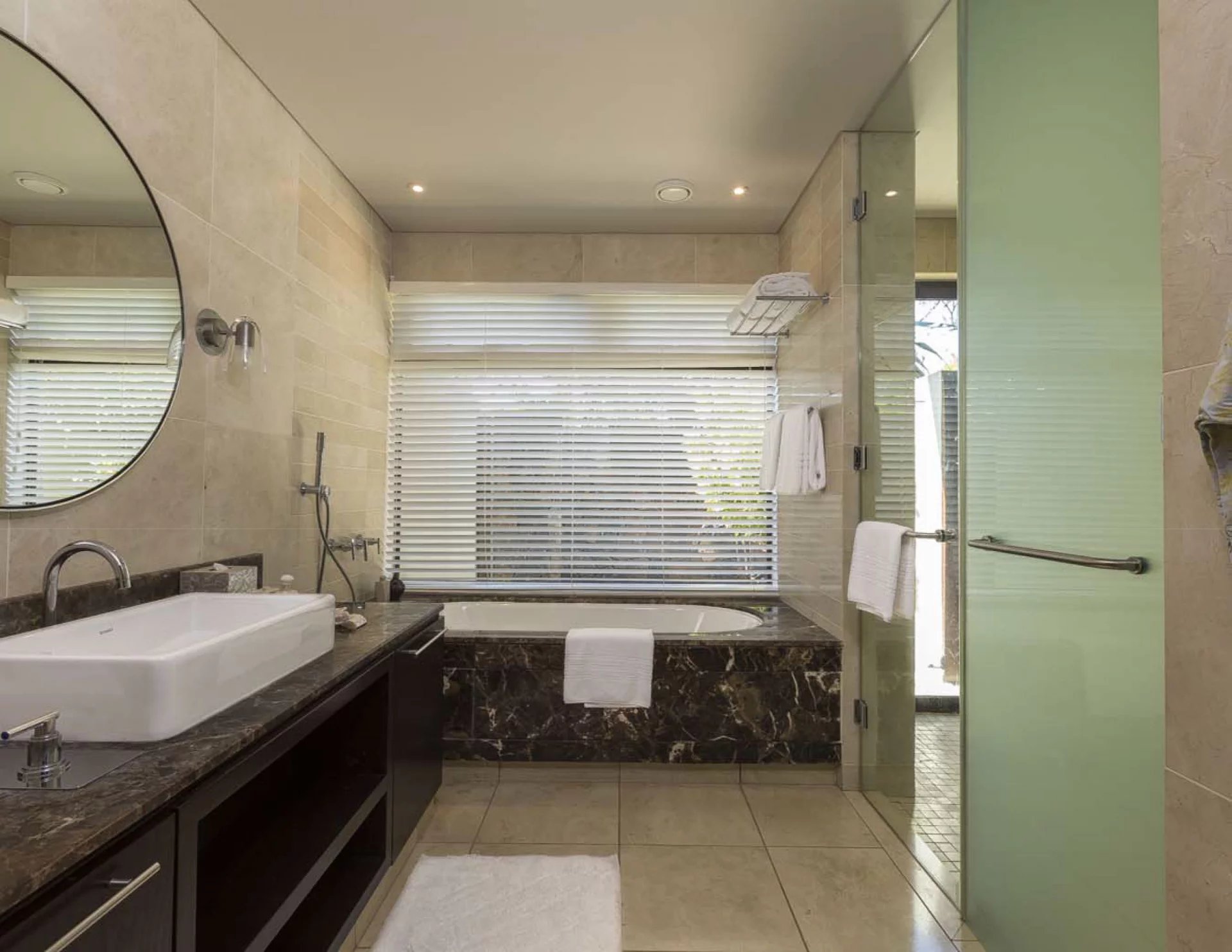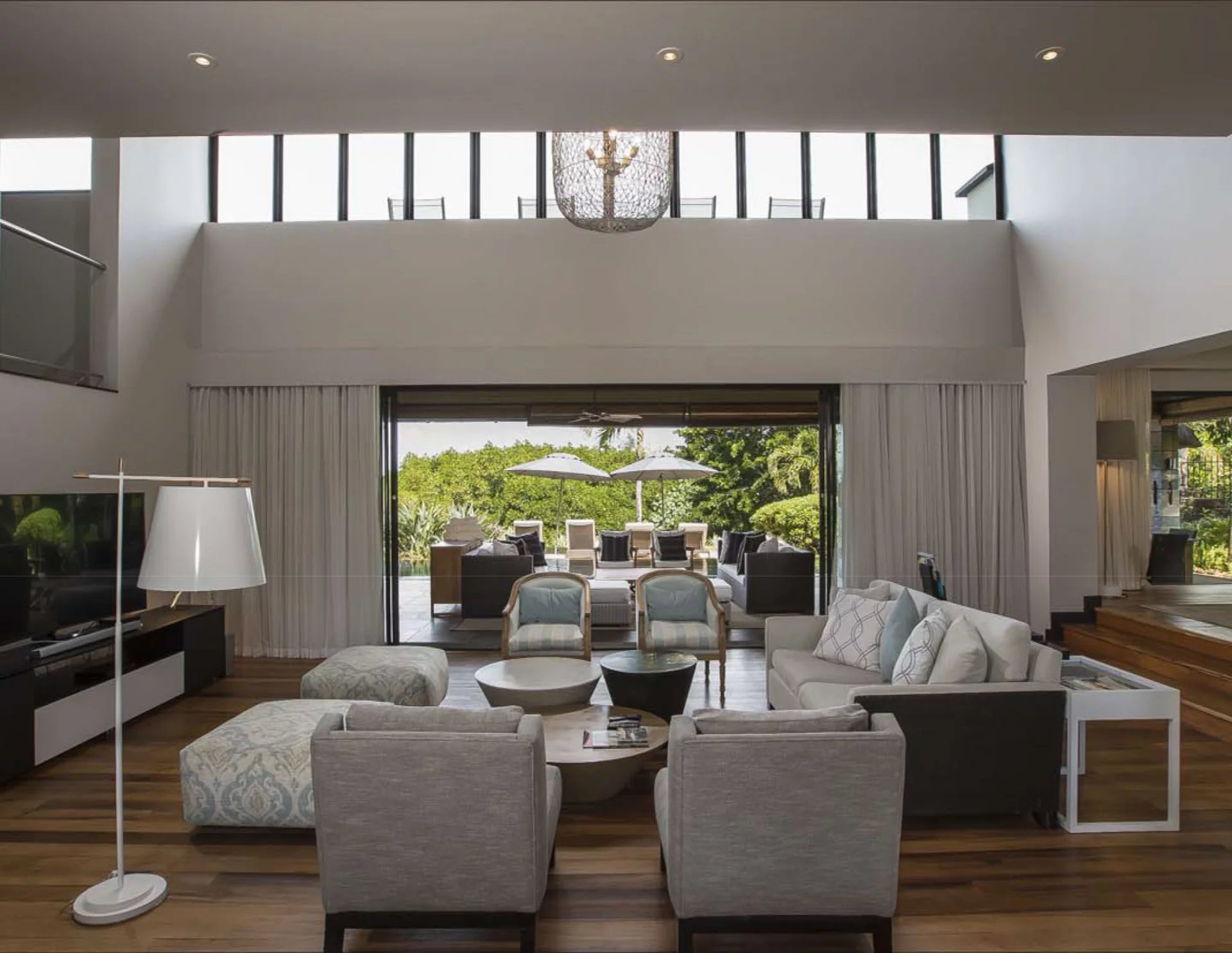 Cet élégante villa de 630m² au style tropical chic, parfaitement intégrées à l’environnement mature qui les entoure, offre 4 chambres en suite sur un vaste terrain de 2619m².