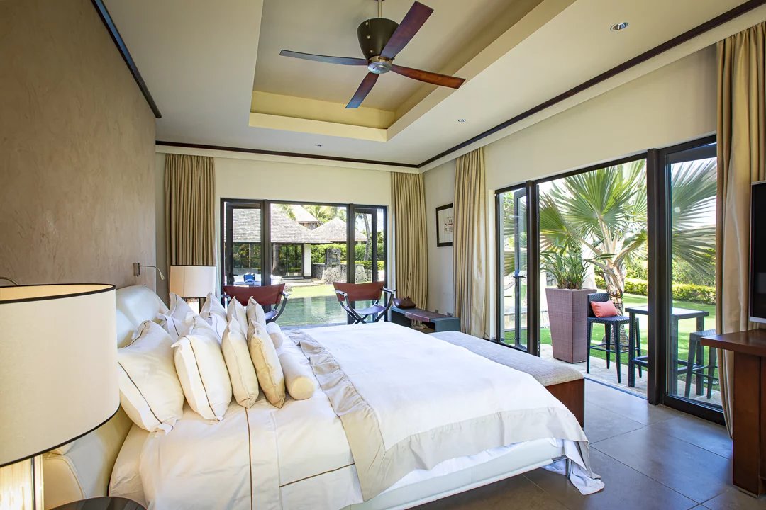 L’intérieur de cette villa au style tropical, se compose de quatre chambres en suite dont une « master »