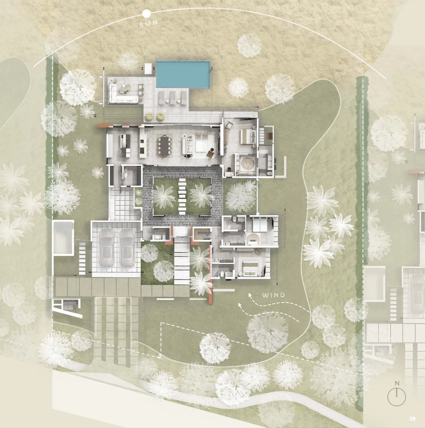 Élégante, spacieuse et intime, la villa N offre une superbe vue sur le golf et la montagne de la Tourelle de Tamarin, tout en offrant une orientation idéale, protégée des vents et bénéficiant pleinement de la lumière naturelle. Leur patio avec aménagement paysager tropical est un poumon vert autour duquel la vie de la maisonnée s’articule au quotidien. Avec leur trois chambres en suite (une 4ème chambre est proposée en option) et son grand espace de vie réunissant salon, salle à manger et cuisine ouverte, le tout tourné vers les espaces de vie extérieurs (kiosque et piscine), c’est la maison familiale tropicale par excellence.