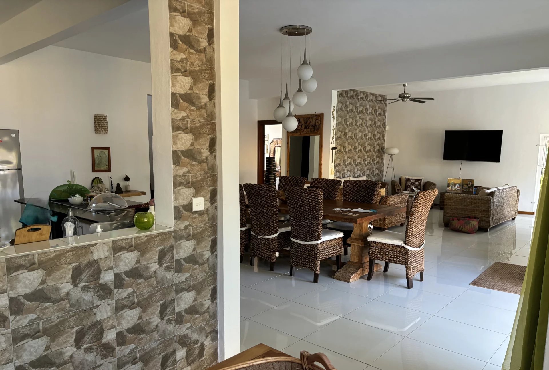 Un spacieux salon et une salle à manger.
