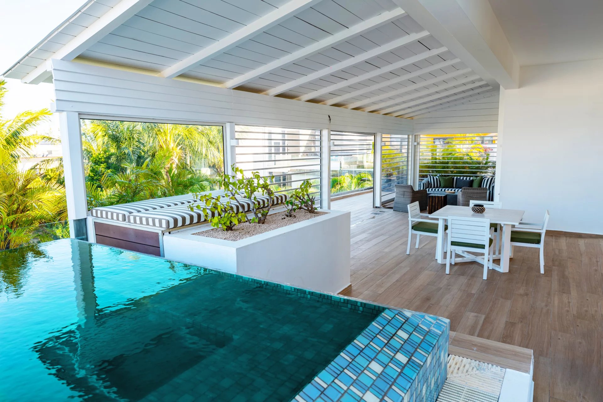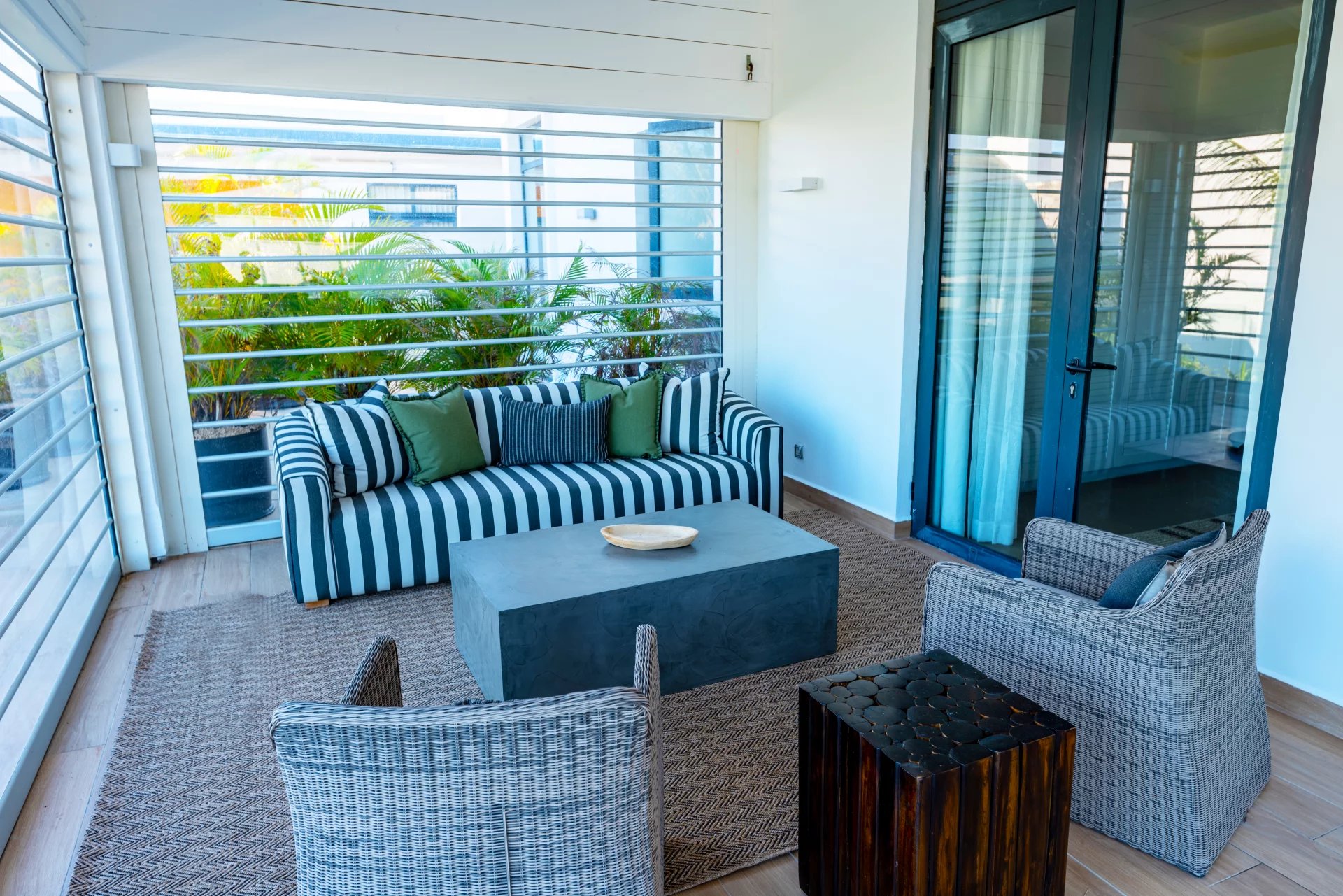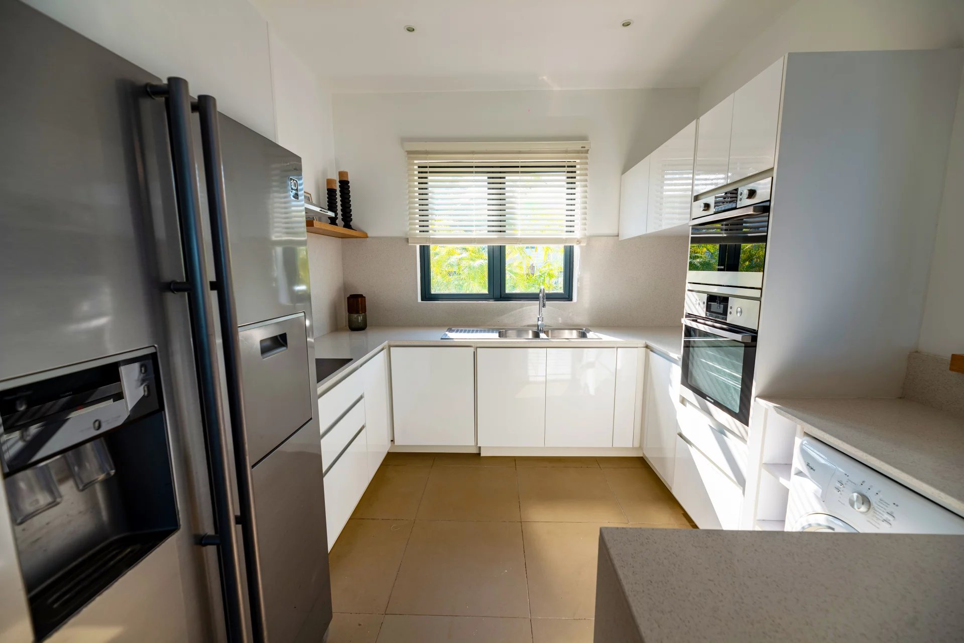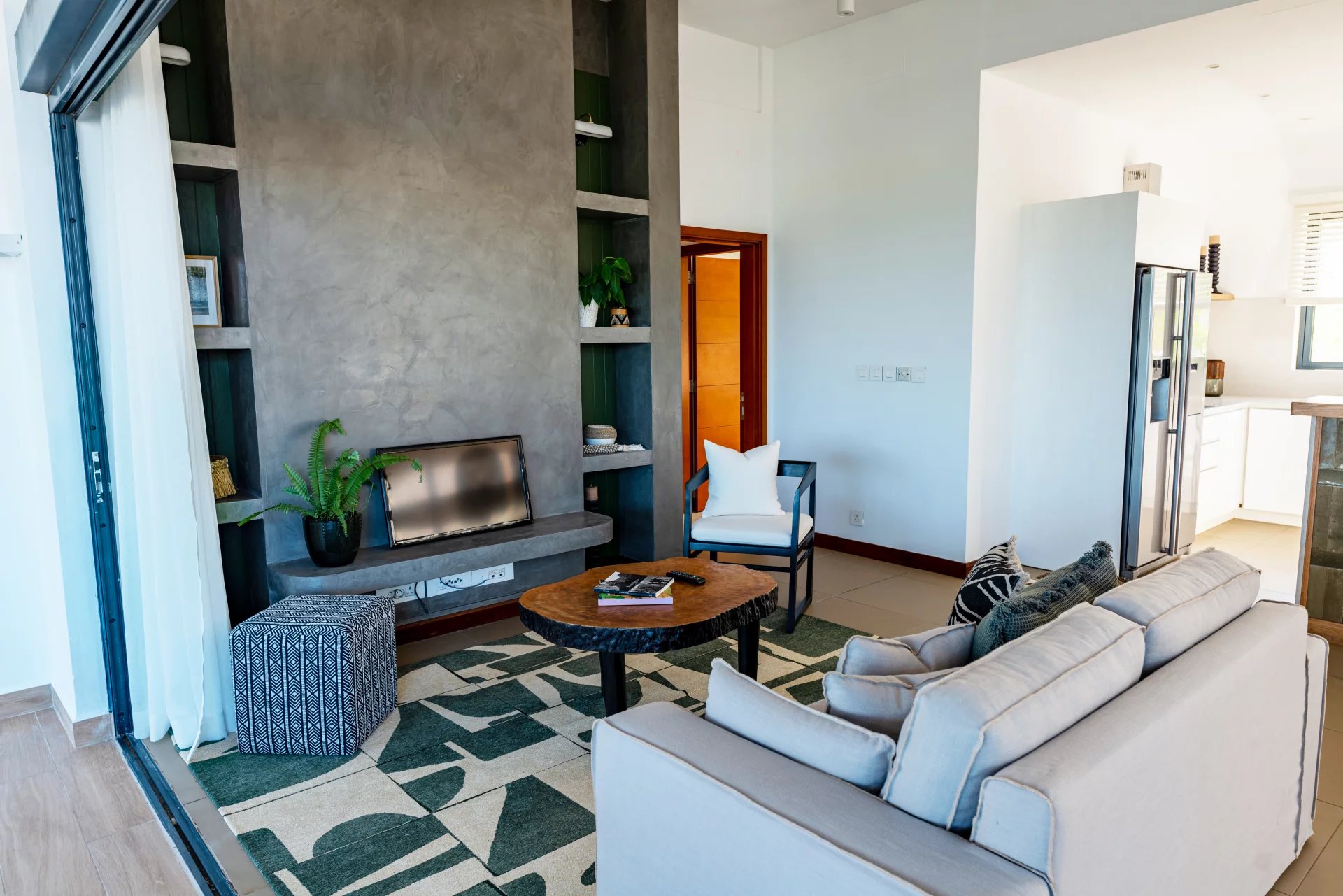 Admirez la beauté de l’environnement tropical avec le son des oiseaux en arrière-plan. De larges ouvertures laissent entrer une lumière apaisante dans la spacieuse pièce de vie qui offre un double volume de toiture au séjour. Une cuisine ouverte entièrement aménagée et équipée complète cet espace de vie convivial.