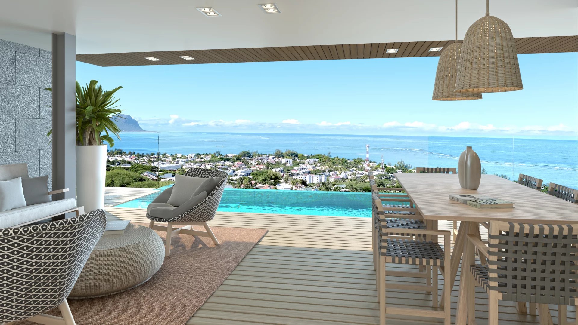 exceptionnelles avec de grandes pièces à vivre, cuisine ouverte, 3 chambres et salles de bains. Ici luxe et confort se conjuguent pour créer un cadre de vie prestigieux. Une décoration épurée, reflet contemporain de la tradition mauricienne.