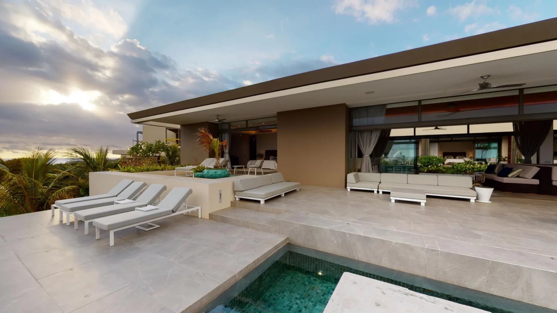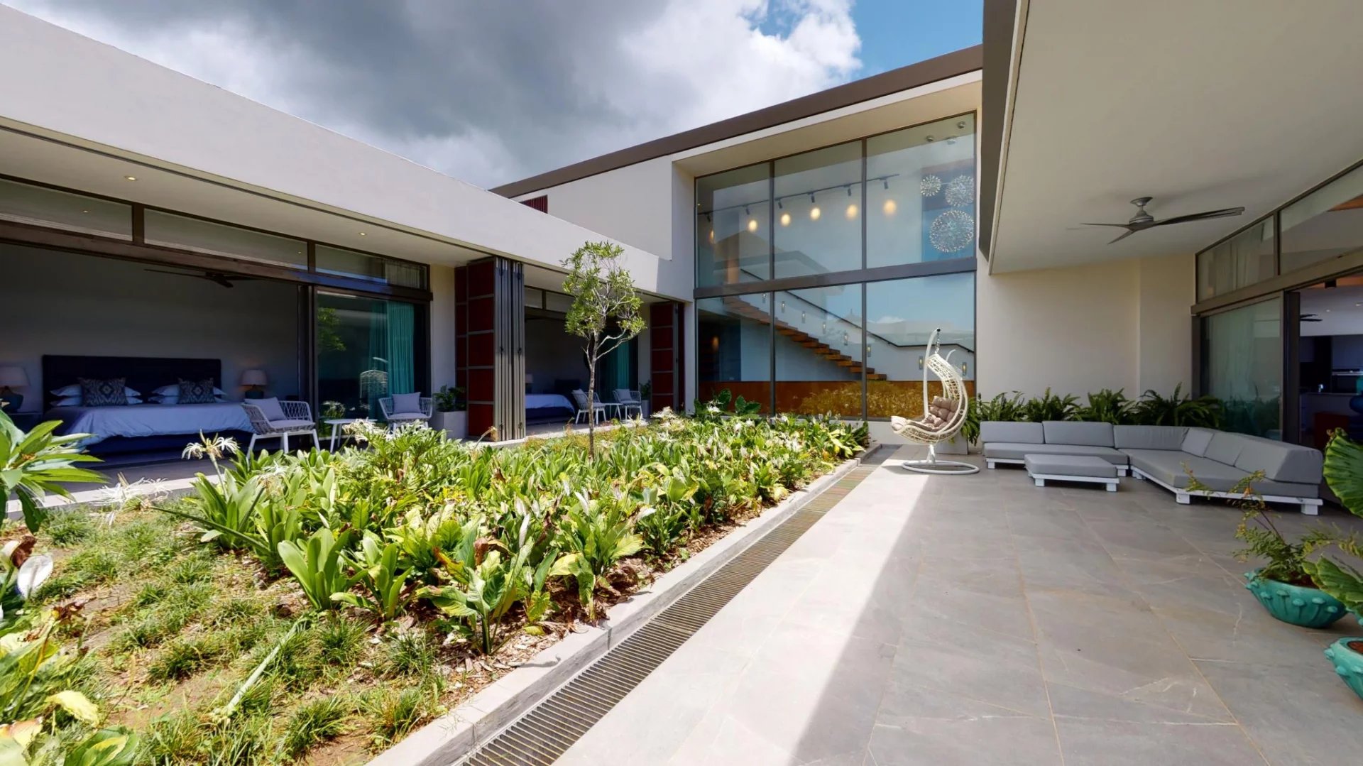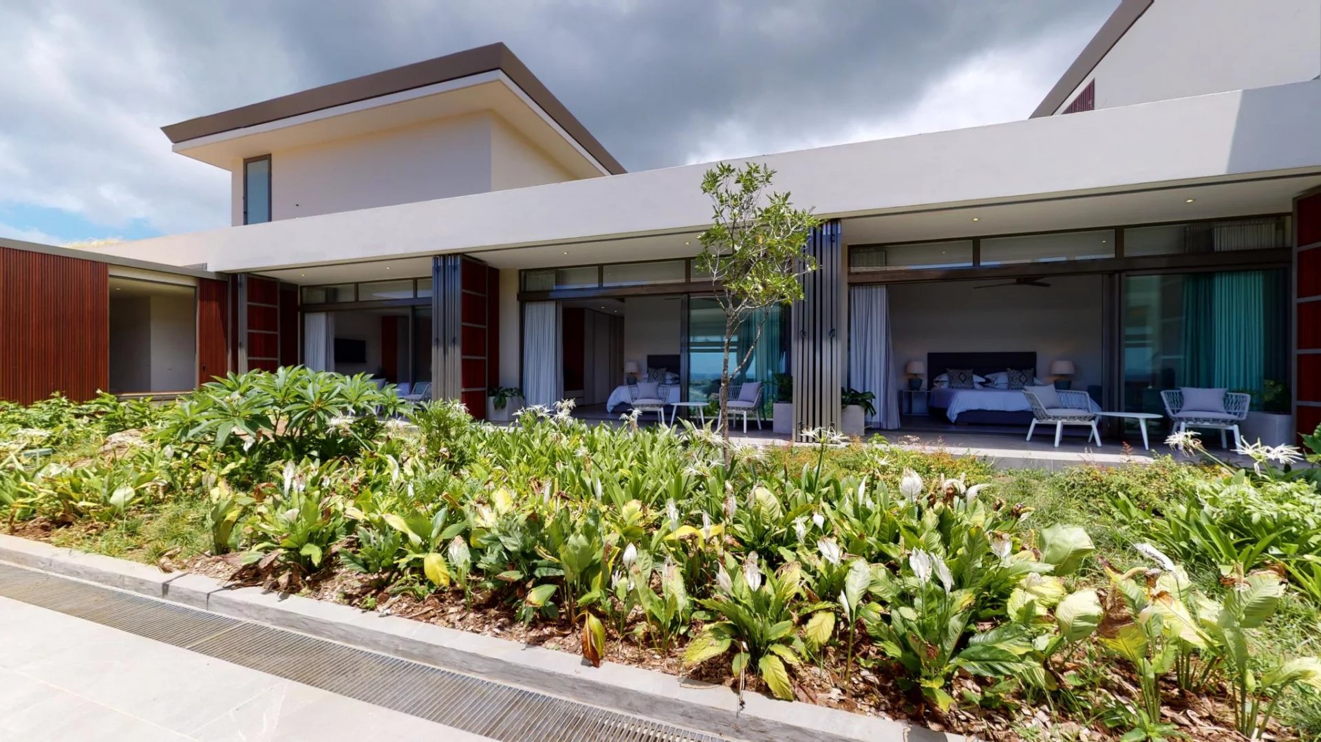 L'espace de vie s'ouvre sur une magnifique terrasse avec une piscine à débordement, offrant une vue spectaculaire sur l'océan. De l'autre côté, un charmant patio paysager avec une végétation tropicale complète cet espace détente. Le rez-de-chaussée comprend également 3 autres chambres en suite, un bureau, une salle de télévision, ainsi que la suite parentale. Cette dernière bénéficie d'une terrasse privée avec une vue sublime sur la mer, d’un dressing et d’une salle de bain en suite avec douche intérieure et extérieure.