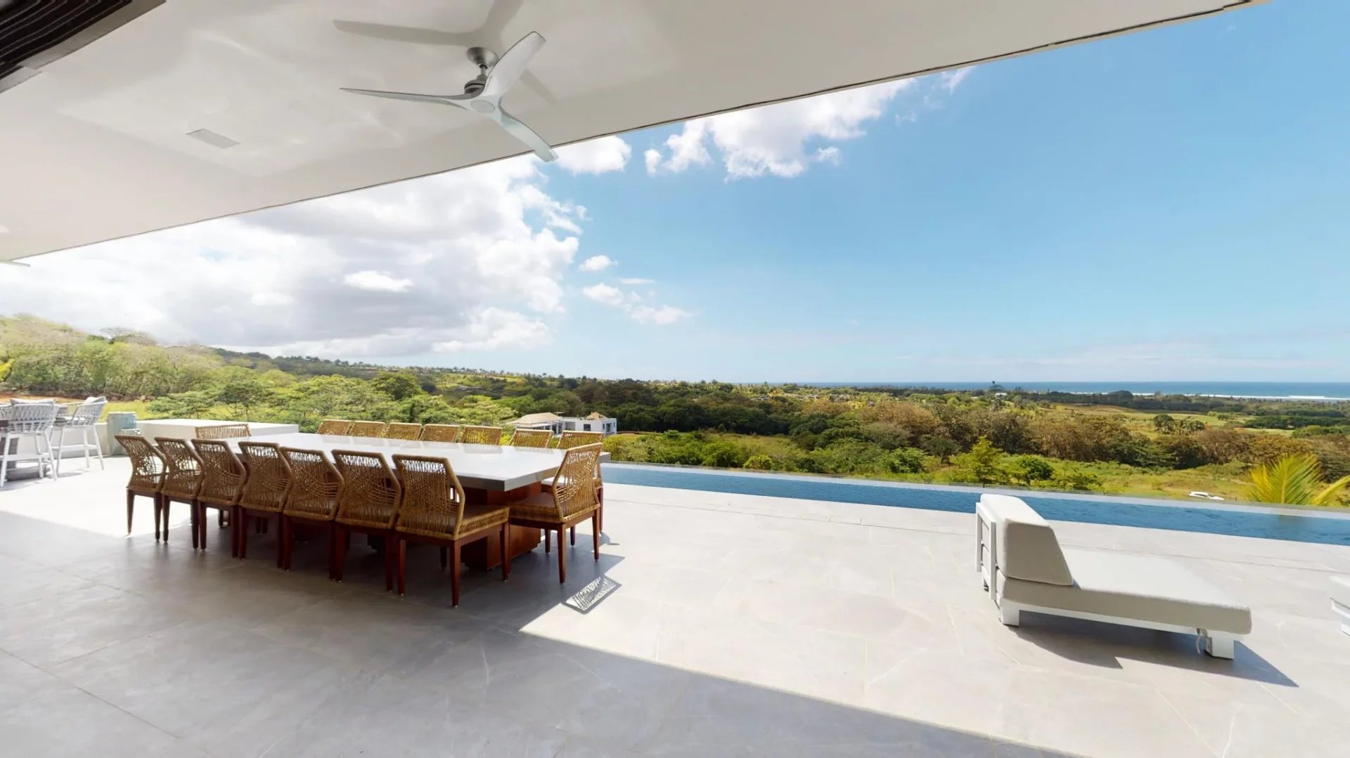 Découvrez cette somptueuse villa contemporaine de 696 m² habitables, avec une vue panoramique imprenable sur l'océan, située dans un domaine sécurisé à Bel Ombre, sur la côte sud-ouest de l'île Maurice. Meublée avec goût, cette propriété offre un cadre de vie luxueux, entouré de nature, entre mer et montagnes.