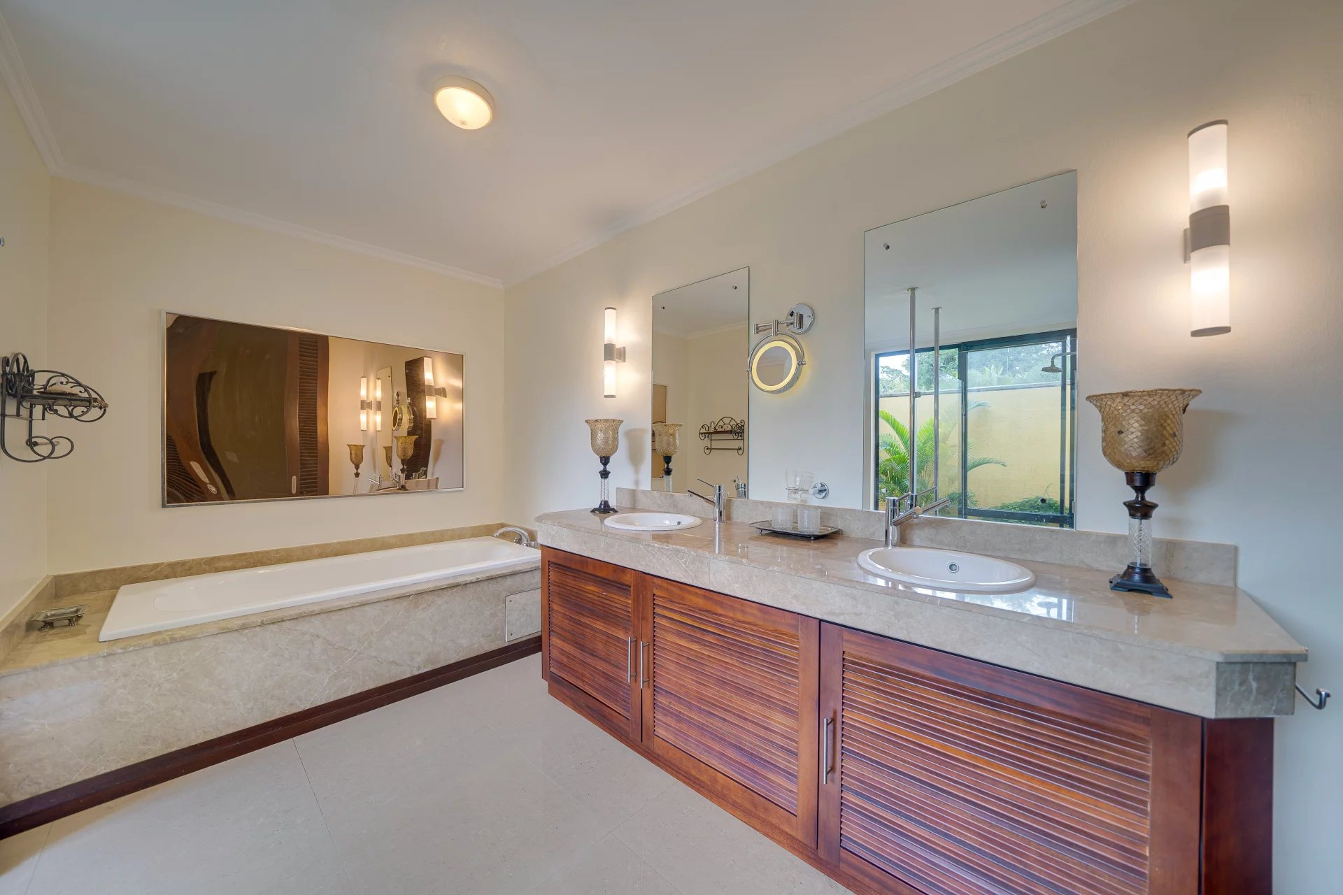 Cette villa moderne offre des espaces luxueusement aménagés et est entièrement équipée pour dépasser vos attentes, bien située sur le domaine exclusif de Tamarina Golf Estate & Beach Club.