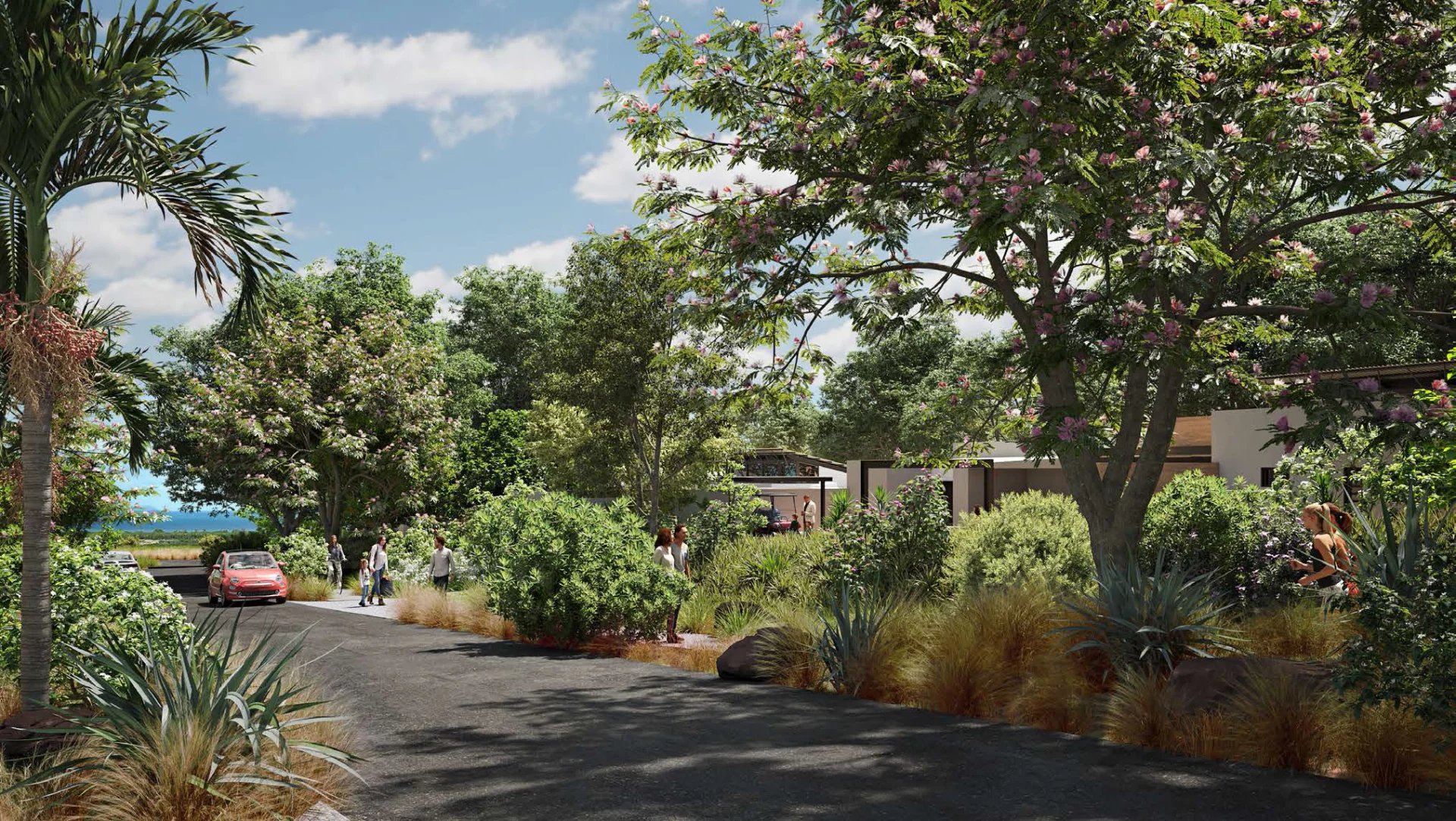 Le concept de paysagisme vise à préserver la beauté du site en réutilisant 100 % des plantes existantes du site pour les bords de route, et en aménageant 90 % de l’environnement autour de chaque villa avec des plantes existantes du site et des plantes endémiques de l’île Maurice. Seule la cour intérieure, “poumon vert” de chaque villa, sera planté d’espèces tropicales pour apporter des couleurs et textures naturelles dans cette zone spécifique.