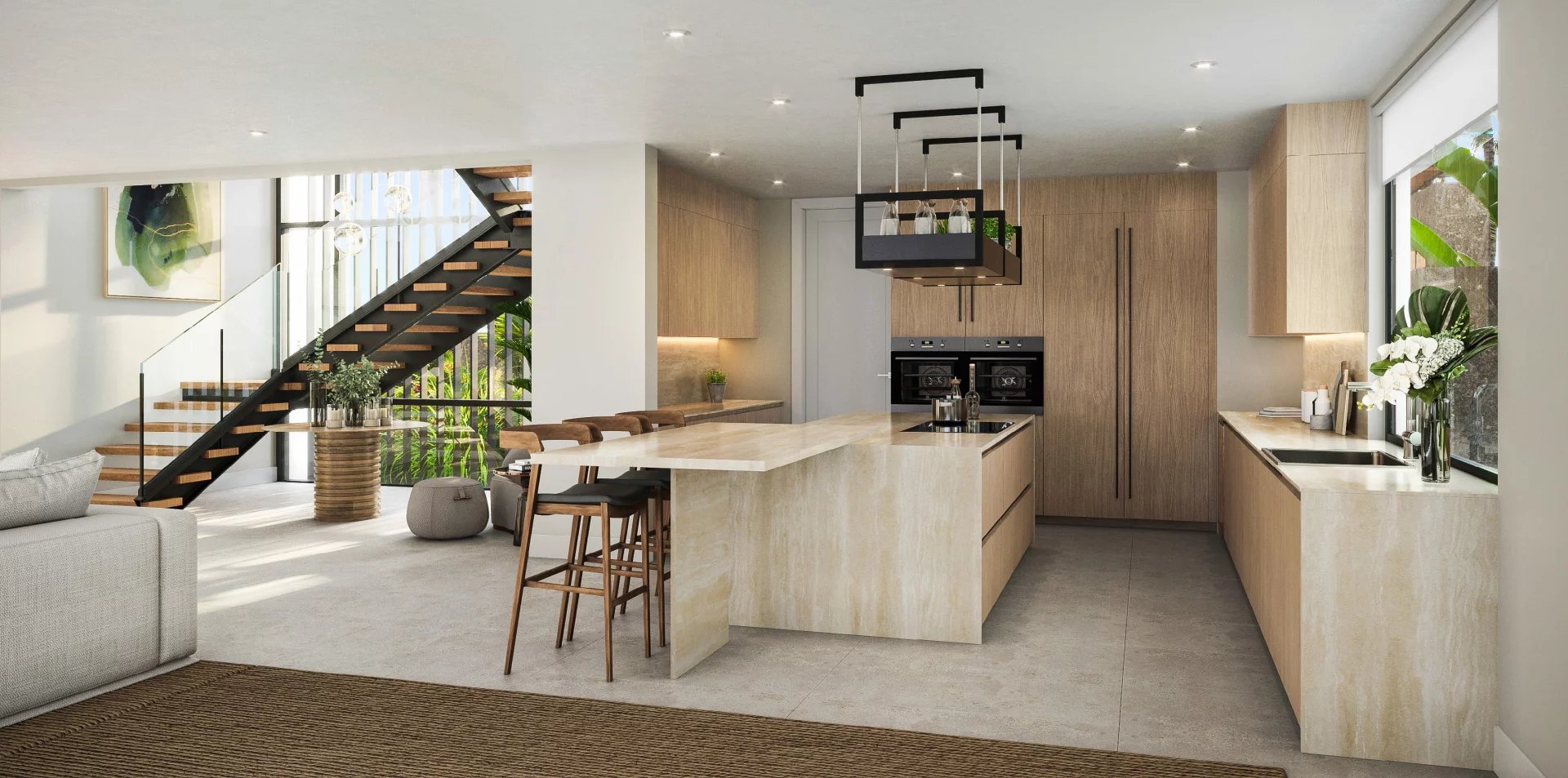 Melville se love dans le cadre époustouflant du littoral nord-est pour l ’enrichir de ses quatre nouvelles villas luxueuses, pieds dans l ’eau. Conçues en tant que havre d’intimité et de sérénité, ces résidences de quatre chambres à coucher fortifient des vues époustouflantes sur l’océan et les îles du Nord. Au diapason d’une expérience moderne de l’insularité, elles se prêtent à la relaxation et à la reconnexion à la nature, tout en bénéficiant d’une implantation qui lui apporte la praticité, en quelques minutes en voiture, d’un éventail mêlé de commodités.