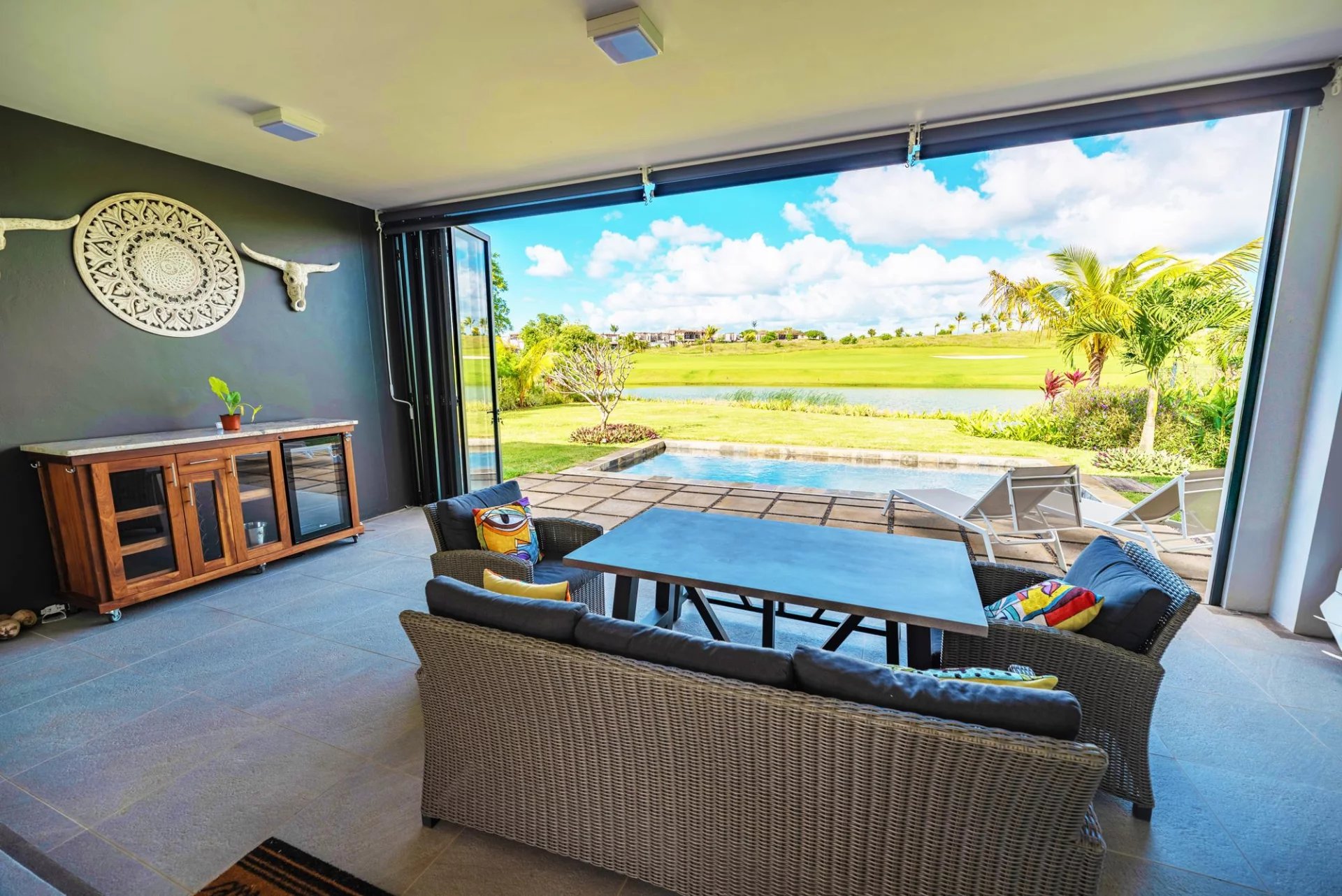 Profitez d'une vue imprenable sur le parcours de golf depuis cette villa exceptionnelle, située dans une résidence sécurisée. Cette maison dispose de trois chambres en suite et d'un vaste espace de vie qui s'étend harmonieusement sur une terrasse avec piscine. La cuisine semi-ouverte, ainsi qu'une buanderie et un espace de rangement, offrent le parfait mélange de confort et de fonctionnalité, garantissant une expérience de vie exceptionnelle.