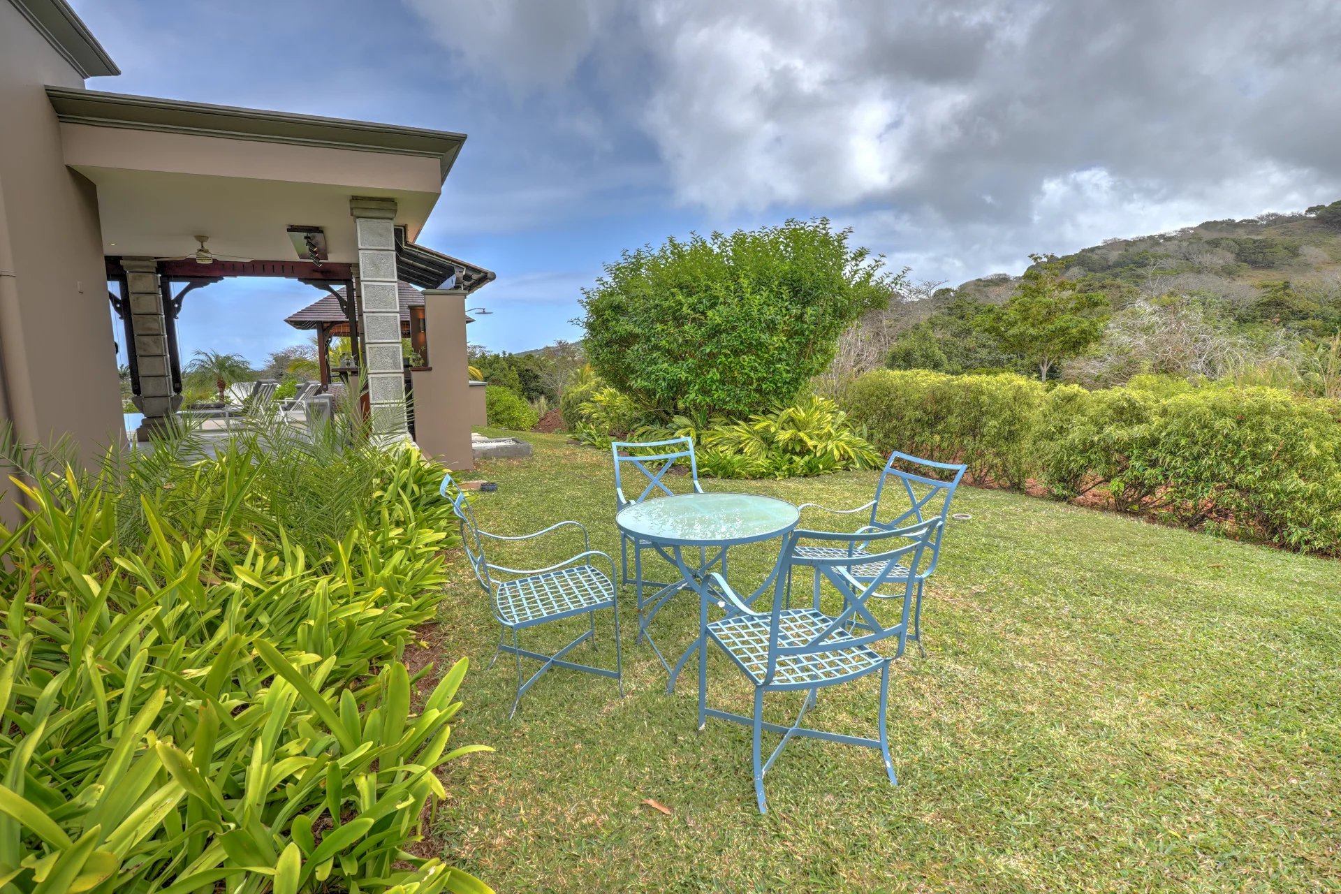 Nichée sur les hauteurs d'Heritage Villas Valriche, cette villa de 418 m² se distingue par son architecture moderne qui conserve un caractère authentiquement tropical. Pensée pour le confort absolu, elle propose des espaces de vie spacieux, de plain-pied, sans aucun escalier.