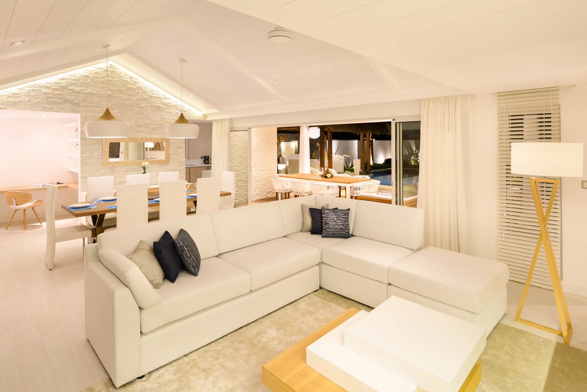 Cette somptueuse villa vous offre un grand espace ouvert regroupant la cuisine, le séjour et la salle à manger. Cette pièce de vie principale s'ouvre sur une vaste terrasse qui s’étend sur toute la façade de la maison. Pour profiter pleinement du climat mauricien, une grande piscine et un kiosque nichés dans un jardin tropical privé vous invitent à la détente.